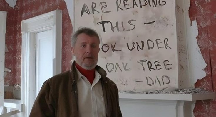 That’s when she found it — a faint line of handwriting hidden beneath the final layer of wallpaper, barely visible in the sunlight. “Ian, come look at this.” The words, written in his father’s careful penmanship, read: “If you’re reading this, it means you didn’t give up. Dig beneath the oak.”